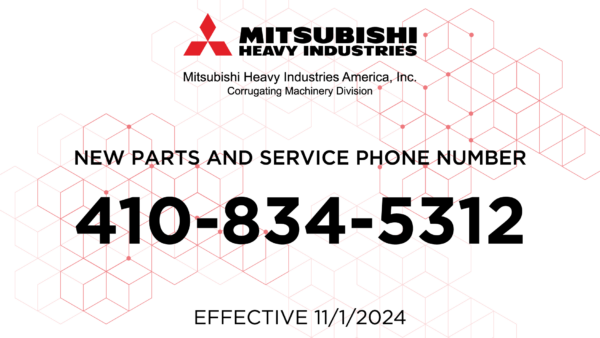 Mitsubishi Heavy Industries America (MHIA) Corrugating Machinery Division, a leading supplier of corrugating and box-making machinery, reinforces its commitment to customer service with a new dedicated parts and service phone number, 410-834-5312, effective November 1, 2024. This new line is designed to streamline customer communication and provide faster, more efficient access to MHIA’s industry-leading service teams. As